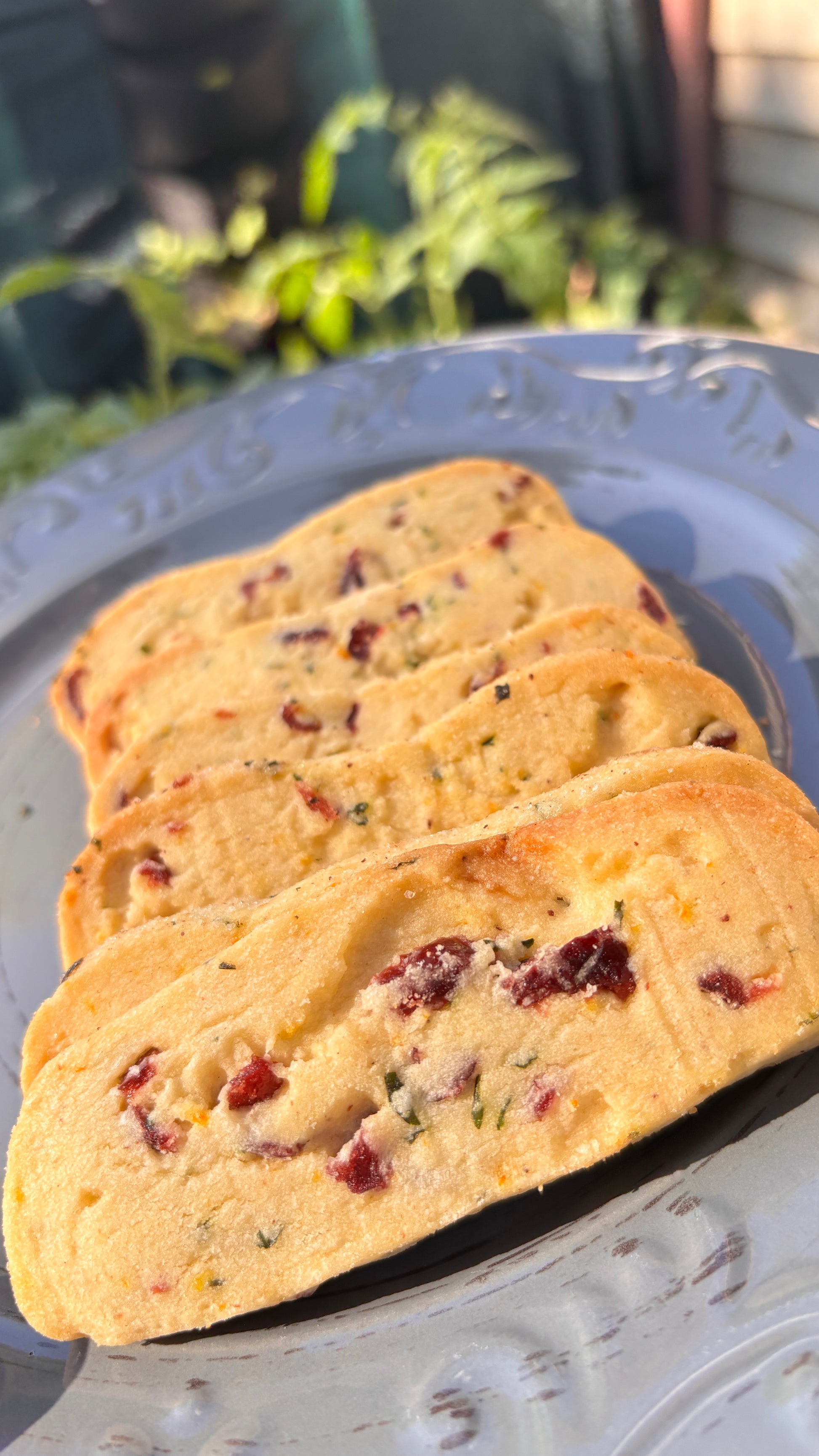 A golden autumn-hued cookie that radiates warmth and brightness. Tart cranberries and vibrant orange zest create a lively burst of fall flavor, their tangy sweet notes weaving through each soft chewy bite. Fresh basil brings a delicate herbal lift, grounding the richness with an unexpected touch of garden freshness. The result is a cookie that feels both comforting and refined, familiar seasonal flavors reimagined with a subtle imaginative twist. Perfect for crisp afternoons, festive gatherings, or as a fragrant little indulgence to savor slowly.