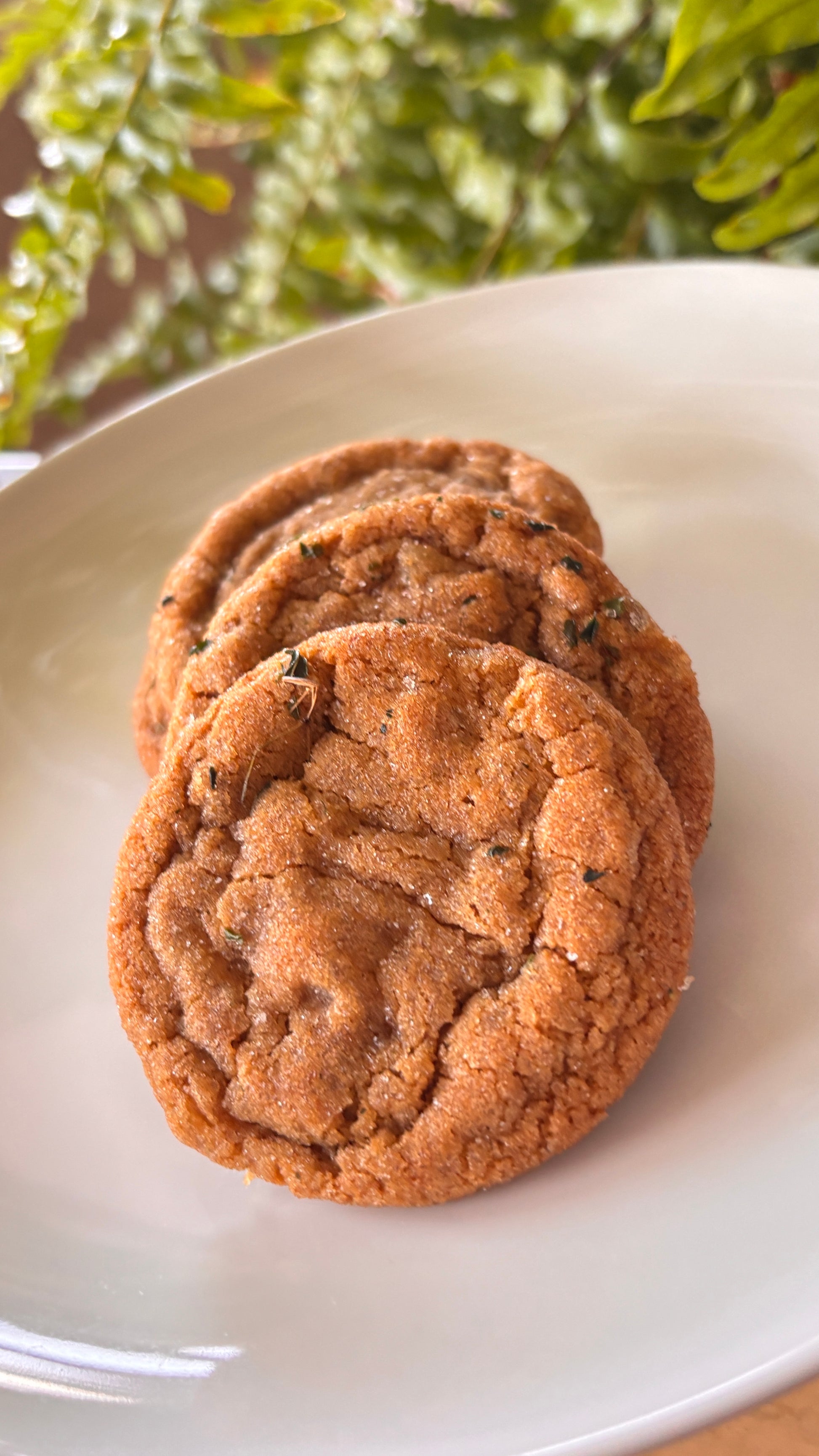 Deeply comforting and quietly bold, this rich cookie brings together the dark earthy sweetness of molasses with the gentle heat of ginger and the refreshing lift of fresh mint leaves. The result is a layered flavor experience that is warm and spiced yet bright and cooling. Each bite feels like a fireside treat touched by a breath of fresh air, familiar, surprising, and endlessly satisfying.